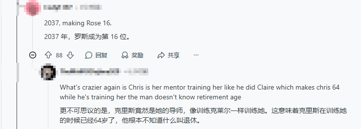 这一发现迅速引发粉丝们围绕角色年龄的大规模讨论。有粉丝补充,系列中另一位角色罗丝出生于2020年,比格蕾丝还要小;还有人吐槽系列时间线设定复杂,同时明确《生化危机8:罗丝之影》的故事发生在2037年,那时罗丝16岁,衰老速度与常人无异。除此之外,有粉丝留意到64岁的克里斯依旧在一线训练新人,这一设定也被大家拿来调侃,感叹其“老当益壮”。