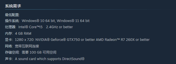 这款游戏还有诸多特色设定,死亡并非简单的重来,而是会产生实际影响和后果,玩家的每一步行动都需要谨慎考量,尤其是在探索布满致命陷阱的地下城时,稍有不慎就会付出代价;同时,游戏还包含自由的3D开放世界、可破坏的游戏环境等元素,试图打造沉浸式的游玩体验。在配置要求上,游戏支持Win10和Win11操作系统,最低需英特尔i5 2.4Ghz的CPU、4GB内存、英伟达GTX750或AMD R7 260X显卡,以及100GB的存储空间。