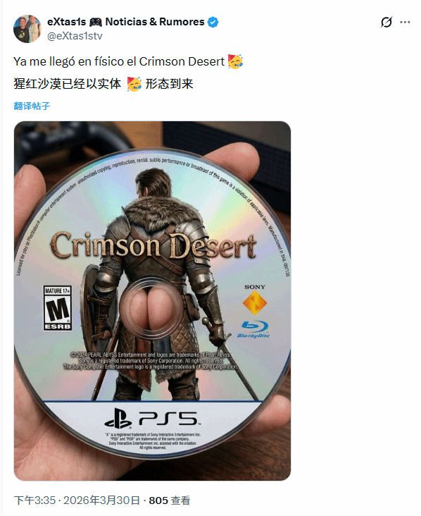 Pearl Abyss打造的开放世界动作冒险新作《红色沙漠》正式发售,这款备受期待的作品上线后,相关话题迅速升温,但意外走红的并非游戏本身的画质或剧情,而是一张被网友恶搞的PS5实体光盘照片。