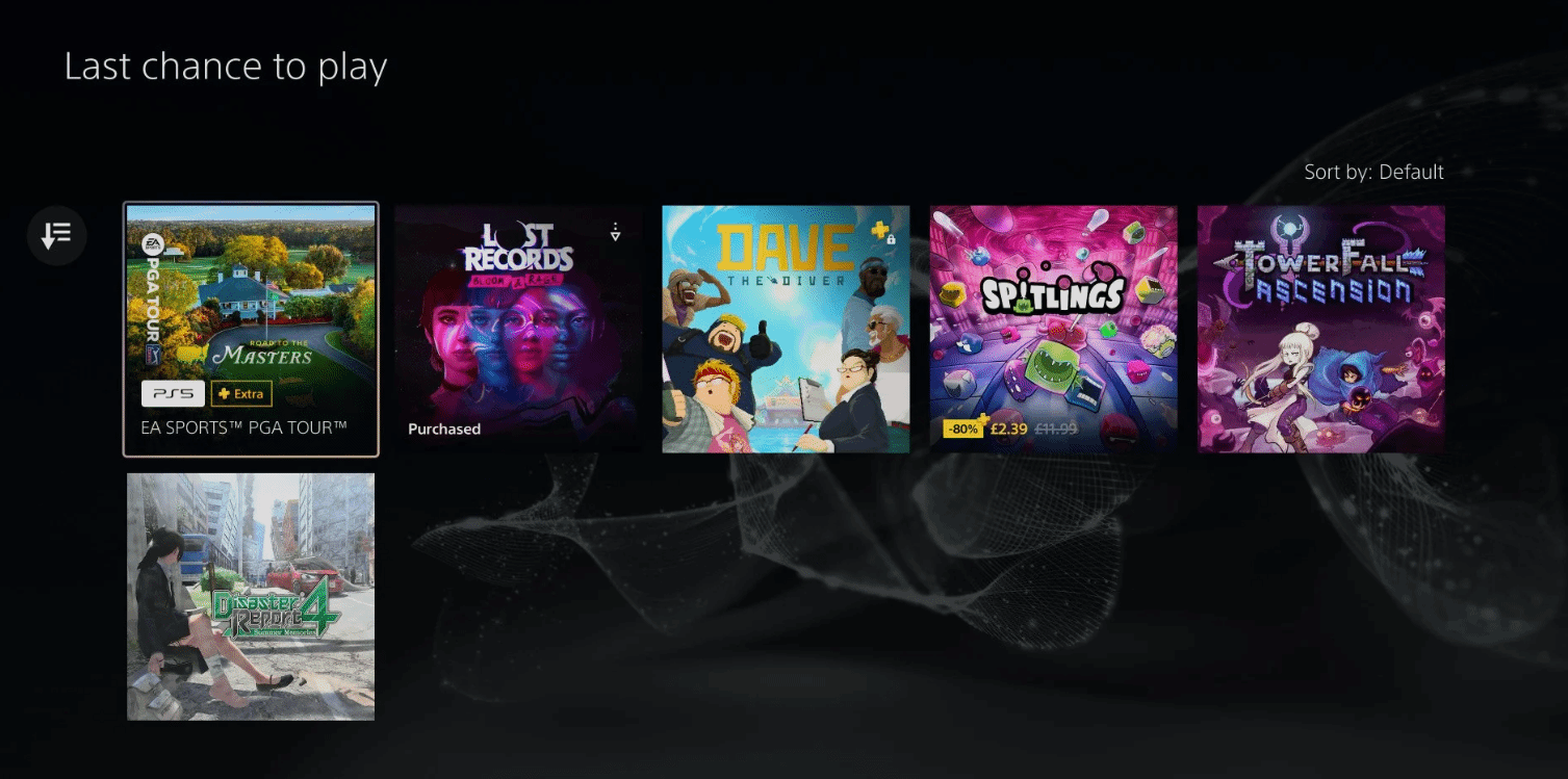 此次确定离库的6款游戏分别是:《EA SPORTS PGA TOUR》、《失落的记录:绽放与愤怒》、《潜水员戴夫》、《塔倒:升天》、《SPITLINGS》以及《绝体绝命都市4Plus:夏日回忆》。其中,《潜水员戴夫》曾斩获TGA最佳独立游戏奖项。