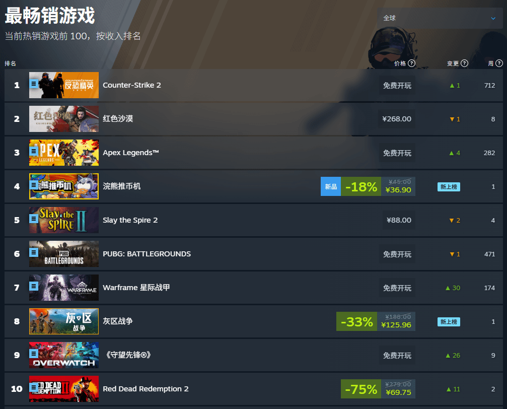 借助折扣热度,《荒野大镖客2》销量大幅增长,近期重返Steam全球畅销榜前十,付费榜更是跻身前五。这款R星2019年发售的开放世界力作,时隔7年仍能逆袭榜单,尽显经典魅力。