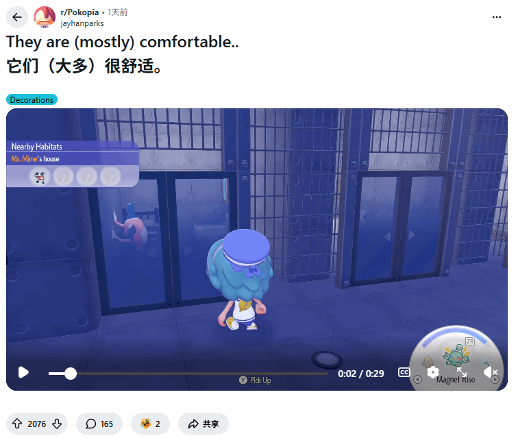 有玩家在《宝可梦:Pokopia》中利用游戏内置的建造工具,打造了一座“监狱”,将自己不喜欢的宝可梦关入狭小阴暗的牢房,视频中这些宝可梦明显表现出不适,而该玩家却未作任何干预。