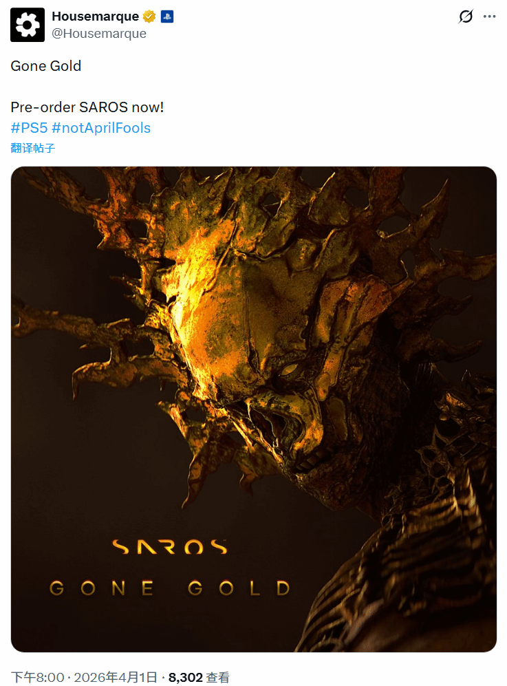 索尼第一方工作室Housemarque的全新作品《沙罗周期》,昨日正式传来重磅消息——游戏已官宣进厂压盘。这一消息标志着游戏开发工作已基本落幕,距离与玩家正式见面仅剩最后一步,该作定于4月30日独家登陆PS5平台。