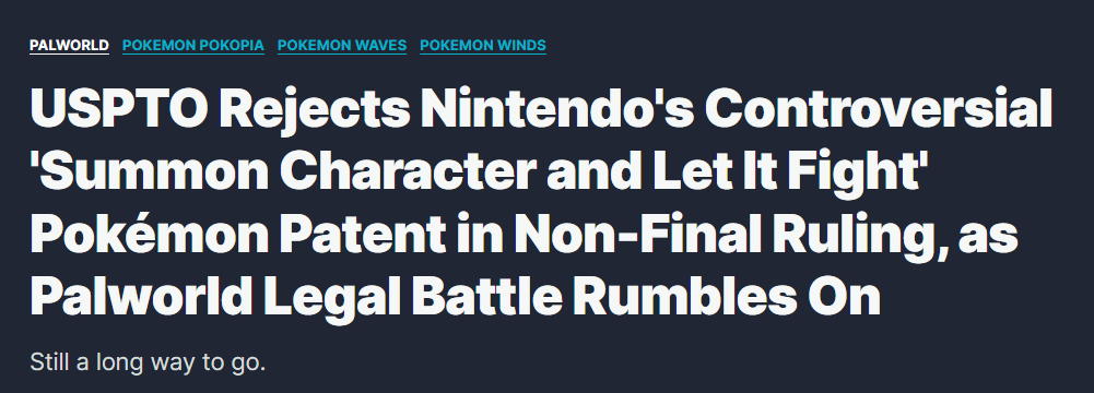需要说明的是,此次驳回还属于“非最终决定”,任天堂依然拥有上诉的权利,这也意味着整个法律流程或许还会进一步延长。更关键的是,这一裁定结果,大概率会对任天堂与Pocketpair之间的诉讼产生不小的影响——要知道,这场案件自去年10月之后,就一直处于进展缓慢、相对沉寂的状态。
