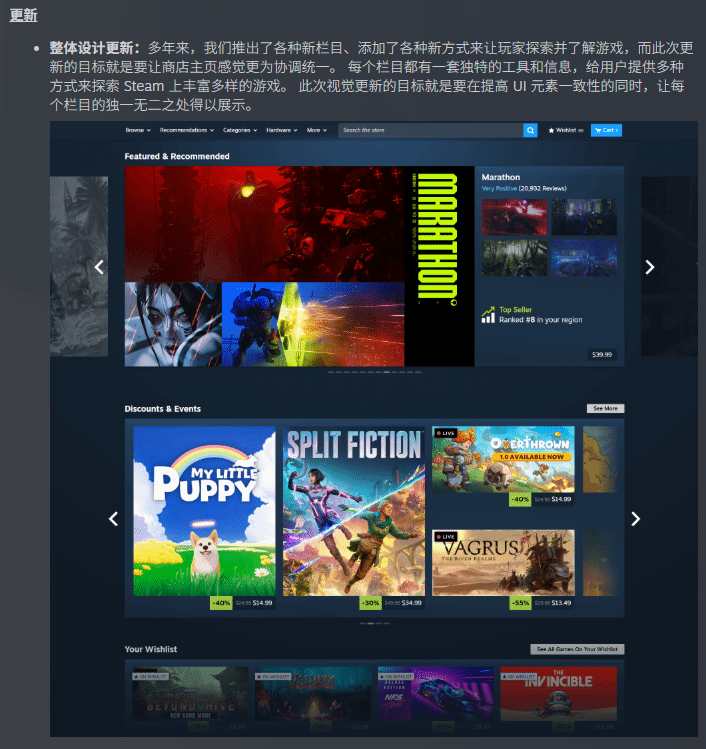 针对不同设备用户,此次更新也做了适配优化:如果玩家使用高分辨率显示器,会发现新的商店主页变得更宽,加载响应速度也有所提升;即便在Steam Deck或大屏幕模式下浏览商店,也能正常体验到所有更新内容,不会出现适配问题。