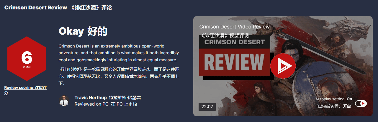在游戏评测解禁阶段,IGN并未立刻发布最终评分,而是给出了“暂评6分”的结论,即便后续完整评测仍定格在6分,这一分数在当时也对游戏的首发口碑造成了一定影响。
