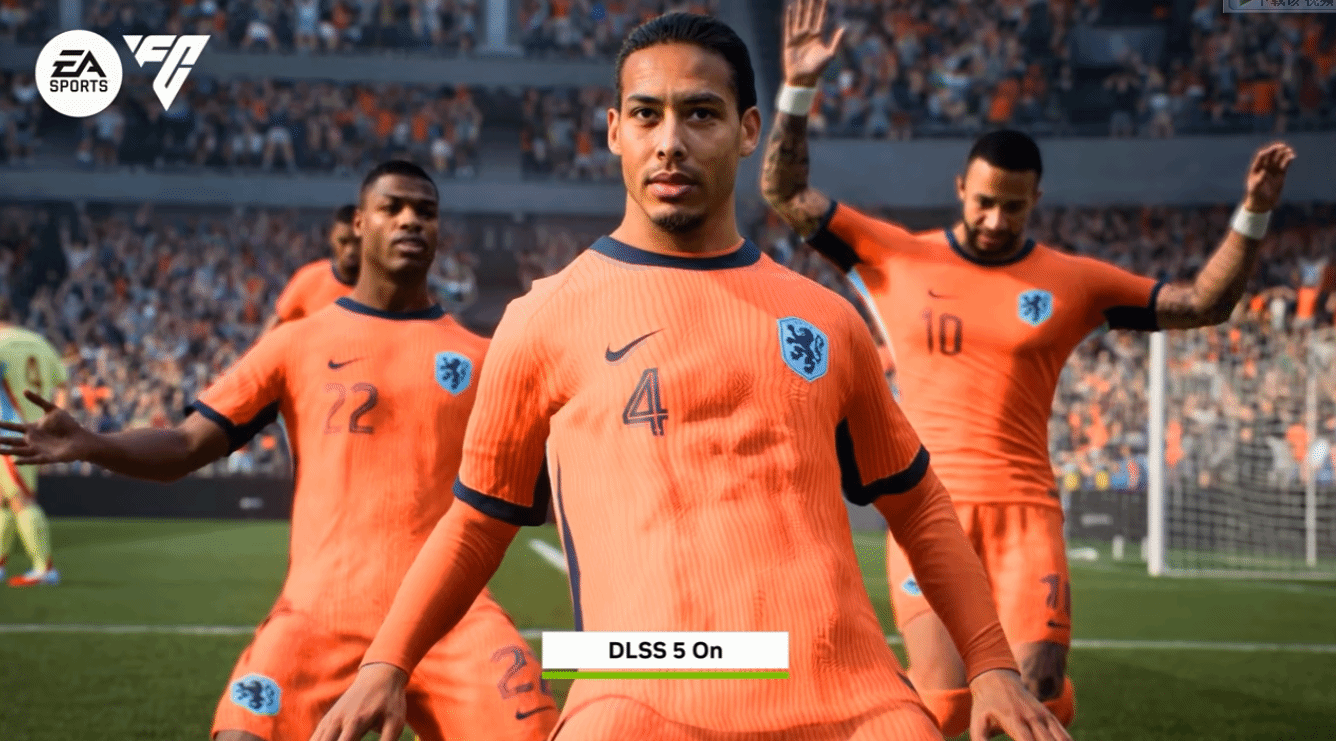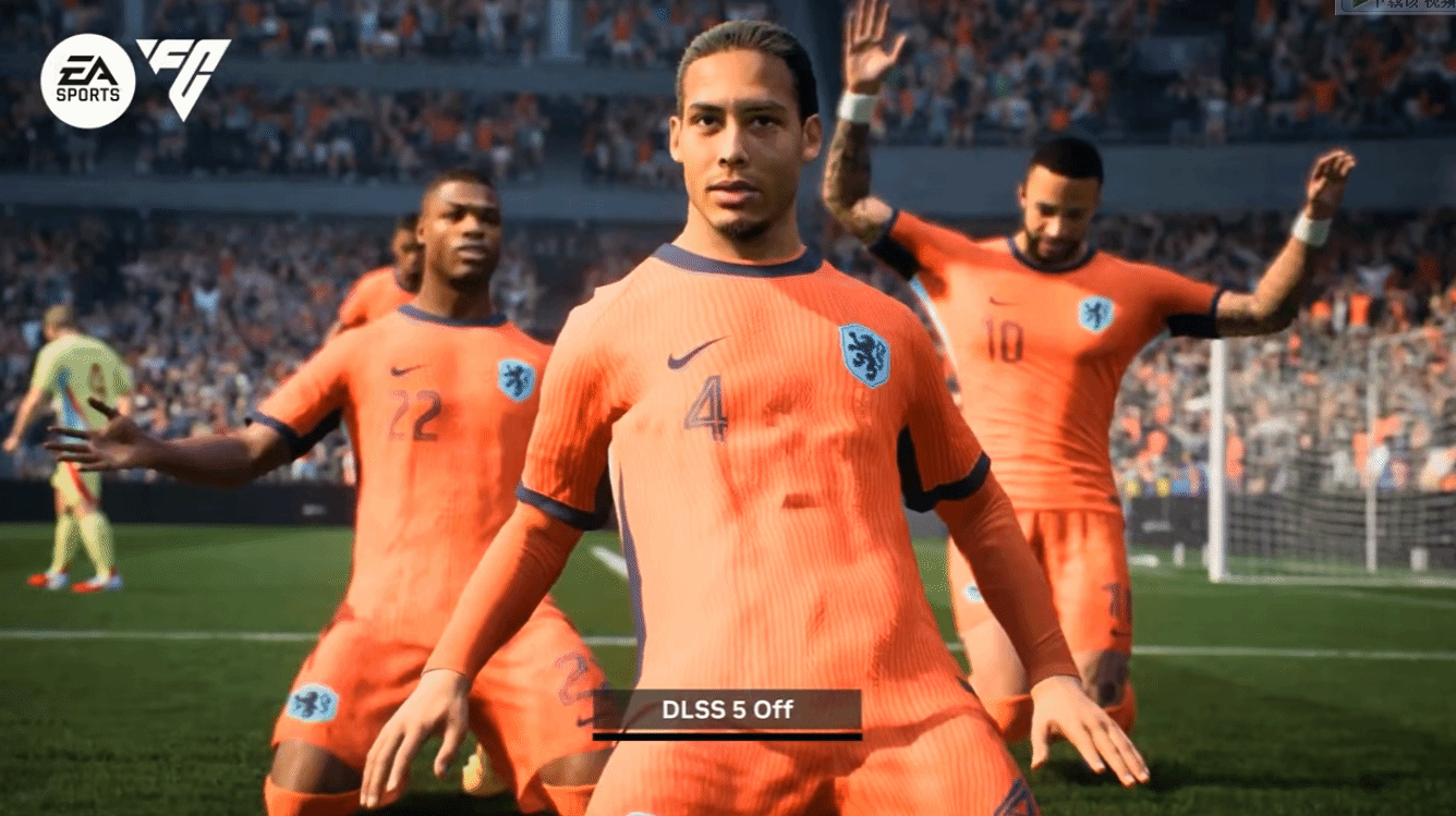 第二个被用来抹黑DLSS 5的案例,来自《EA Sports FC 26》。有网友声称,DLSS 5技术篡改了游戏中球员的球衣显示画面,除此之外,足球表面的画面噪点也被指是该技术导致。但实测结果同样给出了相反结论:不开启DLSS 5时,球衣的画面问题依旧存在,足球上的噪点也清晰可辨。至于网传的“球员手部消失”以及其他各类画面异常,经核实,其根源其实是DLSS 4的帧生成技术——早在DLSS 4.5版本相关内容中,就曾出现过完全一致的异常效果,由此可以百分之百确定,这些画面漏洞与DLSS 5没有任何关联。