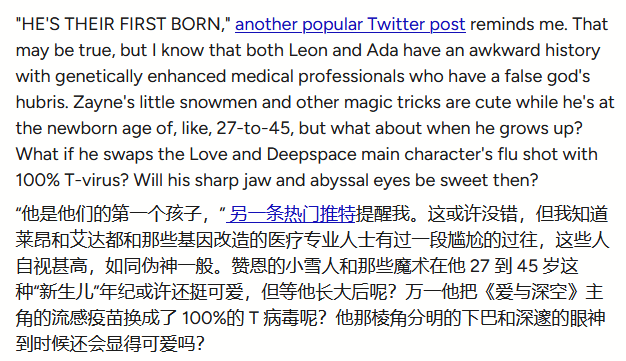 除此之外,玩家们还从黎深的职业设定中读出了趣味关联。在《恋与深空》中,黎深的身份是一名心脏外科医生,虽说与《生化危机》中保护伞公司的生物科技并无直接关联,但GamesRadar+仍调侃道,不少玩家担心,黎深或许会突然“跨界”,把普通的流感疫苗换成T病毒,这番解读也让这场跨作品“认亲”更具趣味性。