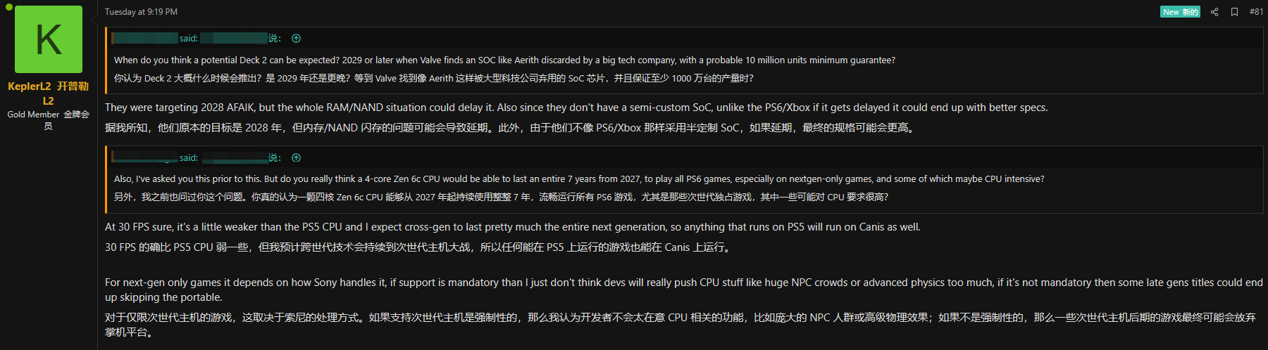 值得注意的是,KeplerL2的所有爆料均属于其个人推测,目前V社官方尚未对Steam Deck 2的发布时间、硬件配置等相关信息作出任何回应,因此对于这些消息,建议玩家保持理性看待,切勿盲目轻信。