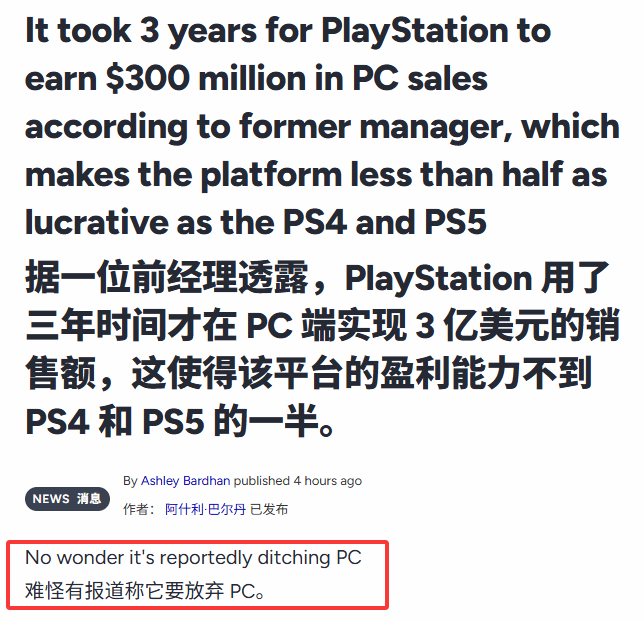 这样的体量差距,也让PC业务的盈利能力显得相对薄弱,而这一数据也从侧面说明了索尼近期为何会对业务布局做出调整。从实际盈利回报来看,索尼大概率会将更多资源投向收益更高的领域,也就是主机生态的搭建以及核心3A内容的研发,相比之下,PC业务目前的盈利规模还未达到公司的预期标准。不少外媒在报道这一情况时,也使用了带有调侃意味的表述。