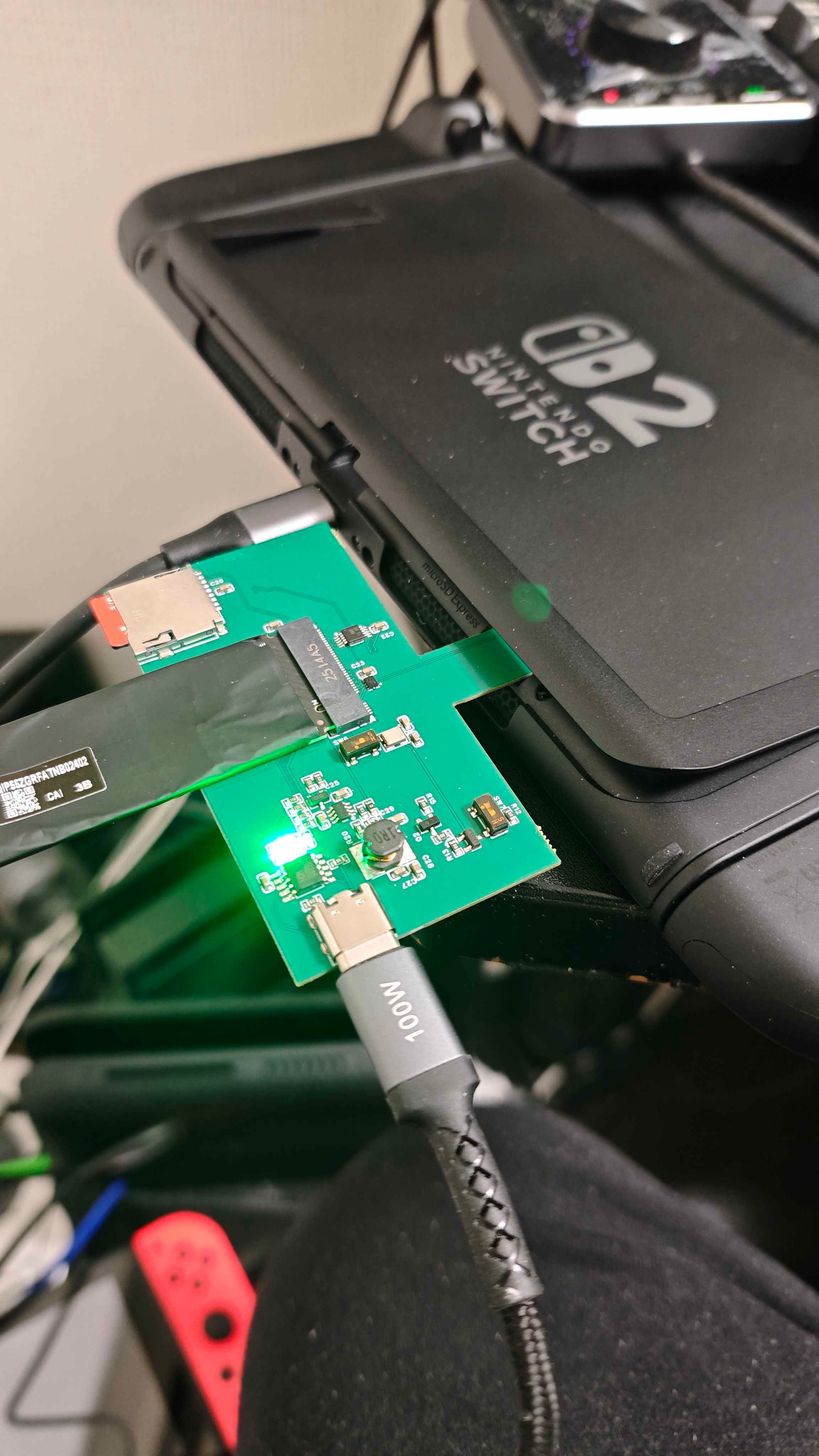 这位博主在动态中难掩兴奋,坦言“真的太惊喜了,没想到NS2真的能成功连接M.2 SSD”。为了证实这一成果的真实性,他还分享了实现该操作的技术细节:通过自制的PCB电路板,借助NS2的扩展接口完成物理层面的连接,从而实现固态硬盘与主机的互通。