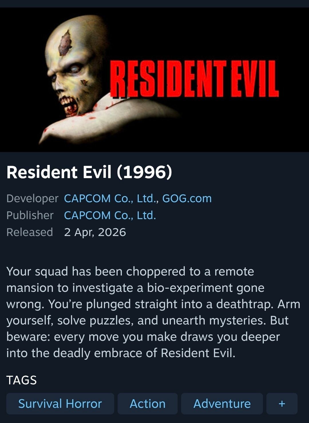 卡普空于昨日在Steam平台正式上线了《生化危机》1、2、3代的原版作品,本以为会成为老玩家情怀补票的好机会,没想到却因《生化危机1》离谱的系统配置要求,在玩家社区掀起了一阵吐槽热潮。