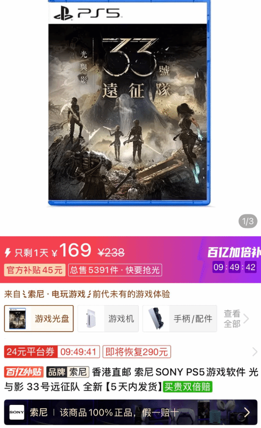 游戏圈迎来了近期极具吸引力的优惠福利,曾拿下TGA 2025年度最佳游戏称号的大作《光与影:33号远征队》,其PS5实体版在拼多多平台迎来大幅降价,价格已跌破200元,全新现货的最低售价仅需169元。