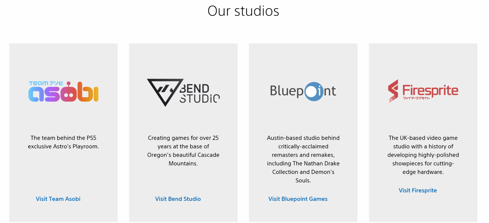索尼近期更新了PlayStation Studios官方页面,曾成功打造《恶魔之魂:重制版》的蓝点工作室(Bluepoint Games)已被从官方名单中移除,这也意味着索尼第一方工作室阵容完成了正式调整。