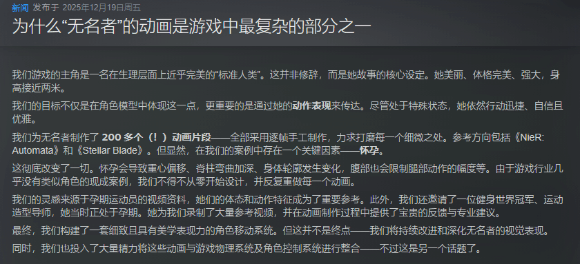在这款游戏之前发布的相关资讯中,开发团队详细介绍了他们制作“孕妇”相关动画的过程。为了让动画效果更贴合真实,他们不仅参考了孕期运动员的相关视频素材,还特意邀请了一位正处于孕期的健身世界冠军、运动造型导师,为他们提供专业的参考资料。