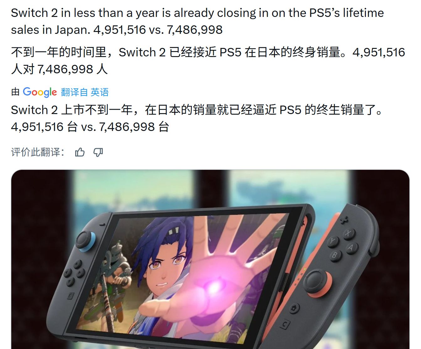 与之形成鲜明对比的是索尼PS5,该主机在日本本土市场始终处于相对弱势的地位。经过多年的市场积累,其累计销量仅比上市刚满一年的Switch 2高出约250万台,两者之间的销量差距正被快速缩小,索尼在日本市场的处境也因此愈发被动。