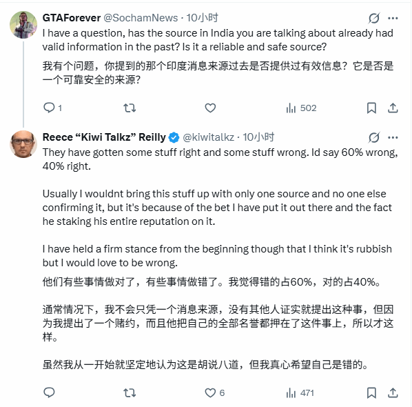 有趣的是,Kiwitalkz本人也坦言,他其实并不相信这位印度消息人士的说法。即便如此,他还是真心希望自己的判断是错误的——毕竟对于所有关注《GTA6》的人来说,谁都期待能看到R星带来更多关于这款作品的新动态。
