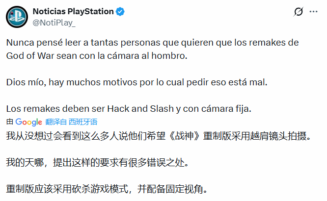 外网博主@NotiPlay_ 最先公开表达了自己的立场,他直言无法理解,为何有大量玩家希望重制版采用类似《战神5》的越肩视角。在他看来,作为一款经典的硬核动作砍杀类游戏(Hack and Slash),《战神》重制版必须坚守传统的固定视角,唯有如此,才能完整保留游戏原本纯粹的战斗逻辑,不破坏其核心玩法魅力。
