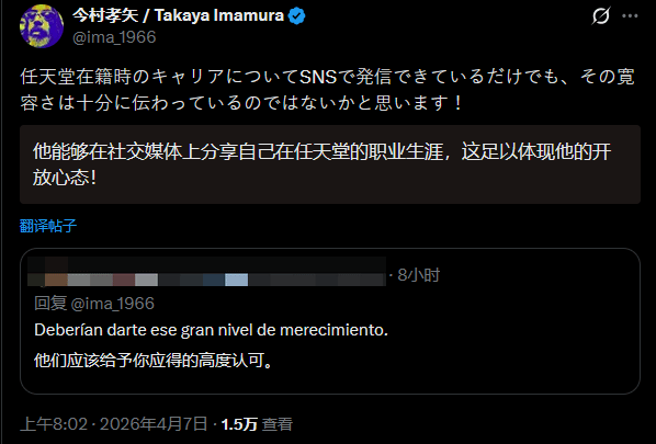 面对粉丝的善意,今村孝矢却给出了令人意外的回应。他坦言自己并未受到任何特殊对待,还感慨道:“很遗憾,我并没有被特殊对待。也许对已经离开的人划清界限,这就是日本企业的一种作风吧。”这番话也被不少人解读为对任天堂“不讲人情”的委婉吐槽。
