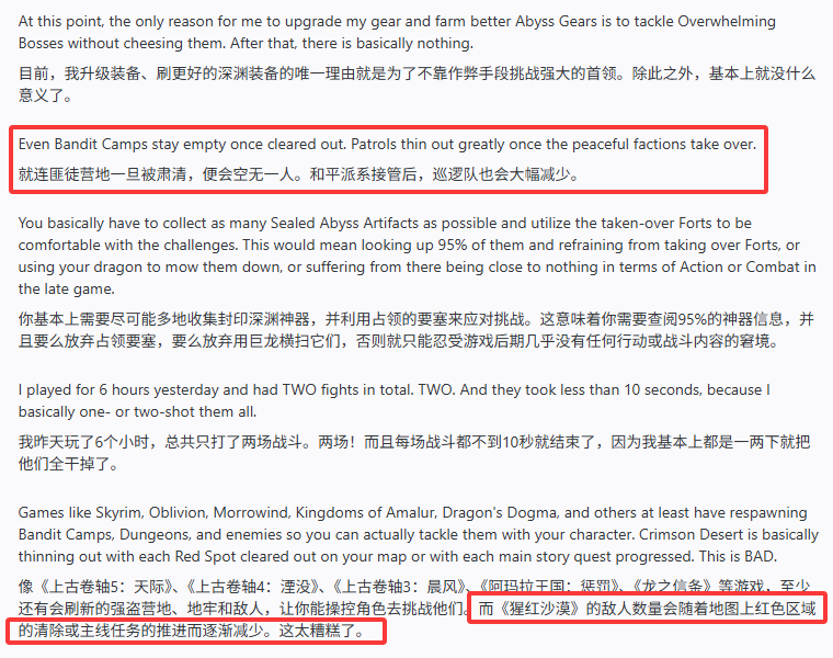 Reddit论坛上有国外玩家分享了自己在《红色沙漠》中遇到的尴尬情况,这个设计让人既无奈又觉得好笑:游戏地图上的敌人数量不算少,但只要被打败,就再也不会重新出现。