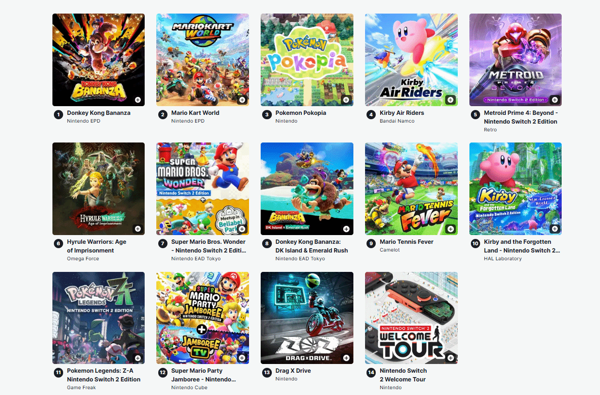 值得注意的是,这份排名有明确的统计范围——仅纳入全新内容作品,《塞尔达传说》系列Switch 2版本并未被列入榜单,这也成为榜单的一大特点。从最终排名不难看出,经典IP的全新续作依然是Switch 2第一方阵容的核心力量,而《咚奇刚:蕉力全开》能够脱颖而出登顶榜首,也充分体现了玩家对任天堂经典IP的喜爱与认可。
