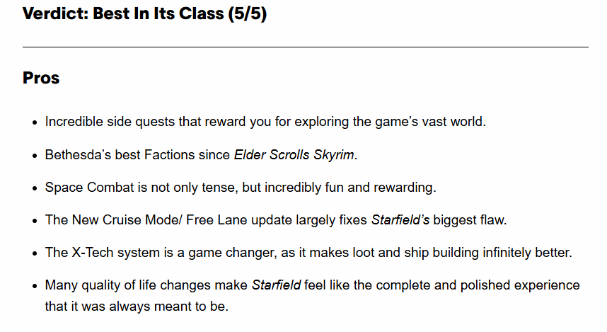 当然这款满分作品也并非完美无缺:开局节奏偏慢仍是其明显短板,同时在城市场景或复杂天气环境下,偶尔会出现性能波动的情况。但瑕不掩瑜,丰富的优质支线任务、强烈的探索回报感、出色的阵营设计、紧张刺激的太空战斗,以及“自由航道”更新对核心缺陷的解决,都让PS5版《星空》成为一款极具竞争力的大作。