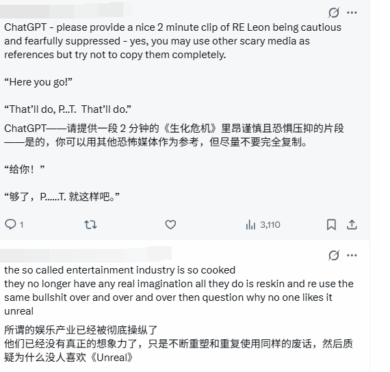 除了与《指环王》的疑似相似片段,还有不少玩家在讨论中表示,《生化危机9:安魂曲》的部分内容,还能看到其他游戏的影子。有玩家指出,游戏中部分设定和玩法,与《恶灵附身》《心灵杀手2》等作品有着相似之处,这也让“抄袭还是致敬”的争议进一步升级。