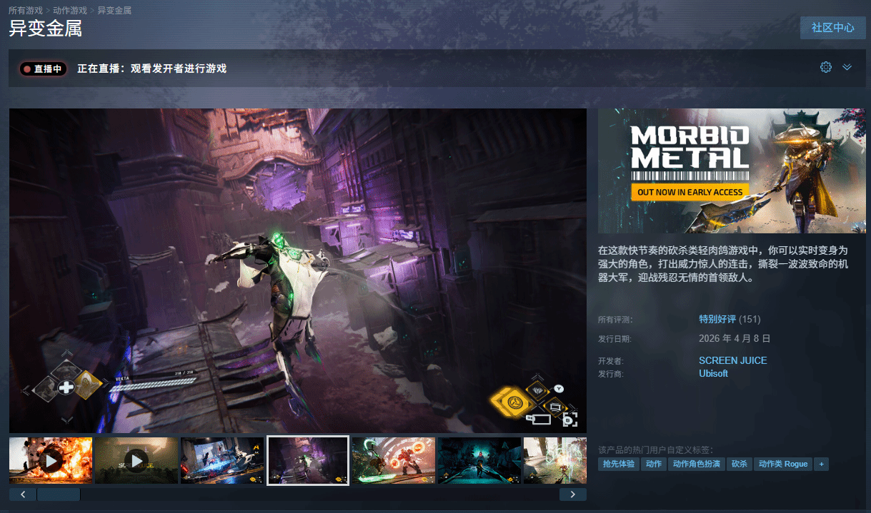 由育碧发行、独立工作室SCREEN JUICE打造的新游《异变金属》,已正式开放抢先体验版,首发期间推出折扣活动,折后定价仅58.5元,亲民的价格搭配扎实的玩法,收获了玩家的广泛关注。