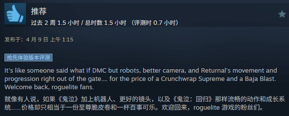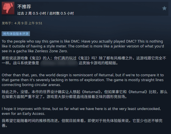 目前这款游戏在Steam平台的玩家评价达到86%特别好评,成为近期口碑亮眼的新作。关于游戏的战斗系统,玩家们有着不同的看法,多数人认为其战斗风格和《鬼泣》有着一定相似之处,流畅的连招的体验颇具代入感;但也有部分玩家提出了不同观点,认为两者在核心玩法上存在明显区别。