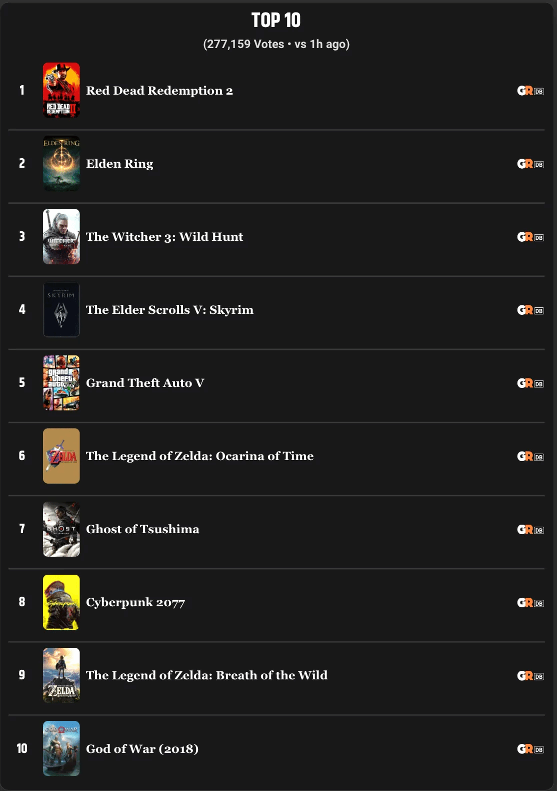 外媒GameRant发起了一场大规模玩家评选活动,最终《荒野大镖客:救赎2》被选为“人类史上最佳游戏”。此次参与评选的人数已突破27万,自活动启动以来,这款由Rockstar Games打造的西部题材作品就一直占据榜首位置,从未被超越。