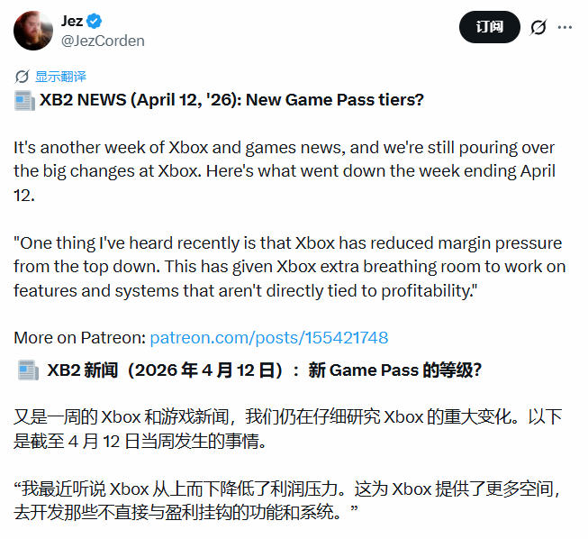 为在次世代主机竞争中占据优势,微软近期针对Xbox部门再度放出关键举措。知名Xbox行业记者Jez Corden在最新一期播客中透露,微软已下调对Xbox部门的利润考核标准,这一调整让Xbox团队得以摆脱过高的盈利压力,拥有更多精力投入到非盈利导向的功能研发与系统优化中。