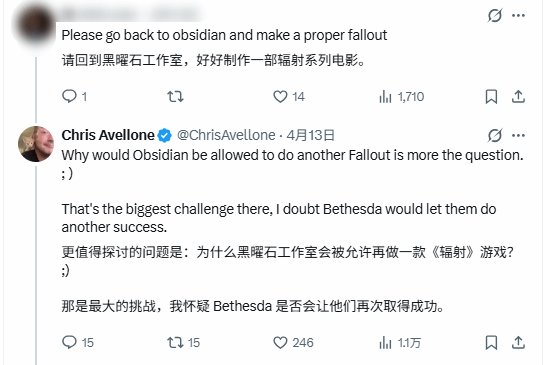 事实上,黑曜石娱乐曾与Bethesda合作开发《辐射:新维加斯》,该作至今仍被许多玩家奉为系列经典,也正因如此,粉丝们一直期盼双方能再度携手,打造续作。而此次Chris Avellone的回应,无疑给这份期待泼了一盆冷水,也让不少玩家猜测,黑曜石或许真的将彻底与《辐射》系列的核心开发工作渐行渐远。
