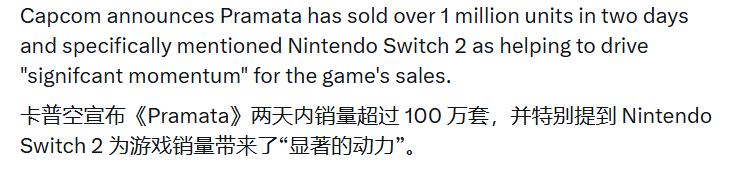 卡普空在官宣中特别提及,Switch 2平台为游戏销量带来了显著动力,是本次首周销量爆发的关键助推因素。Switch 2作为日本国民级平台,极高的普及率为游戏传播和销量提升奠定了基础。