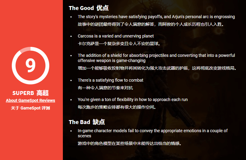 gamespot评价中提到,尽管《沙罗周期》归属于Roguelite品类,但它对“游戏流程”的解读,比绝大多数同类型作品都更为宽泛。作为Housemarque工作室的全新力作,这款游戏和该工作室此前推出的《Returnal》有着不少共通之处——两者均为融入弹幕射击元素的科幻题材第三人称射击游戏。
