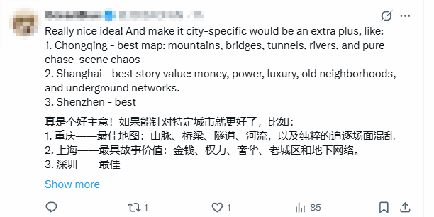 你心中最适合打造GTA游戏地图的中国城市是哪一座?不妨在评论区分享你的看法。