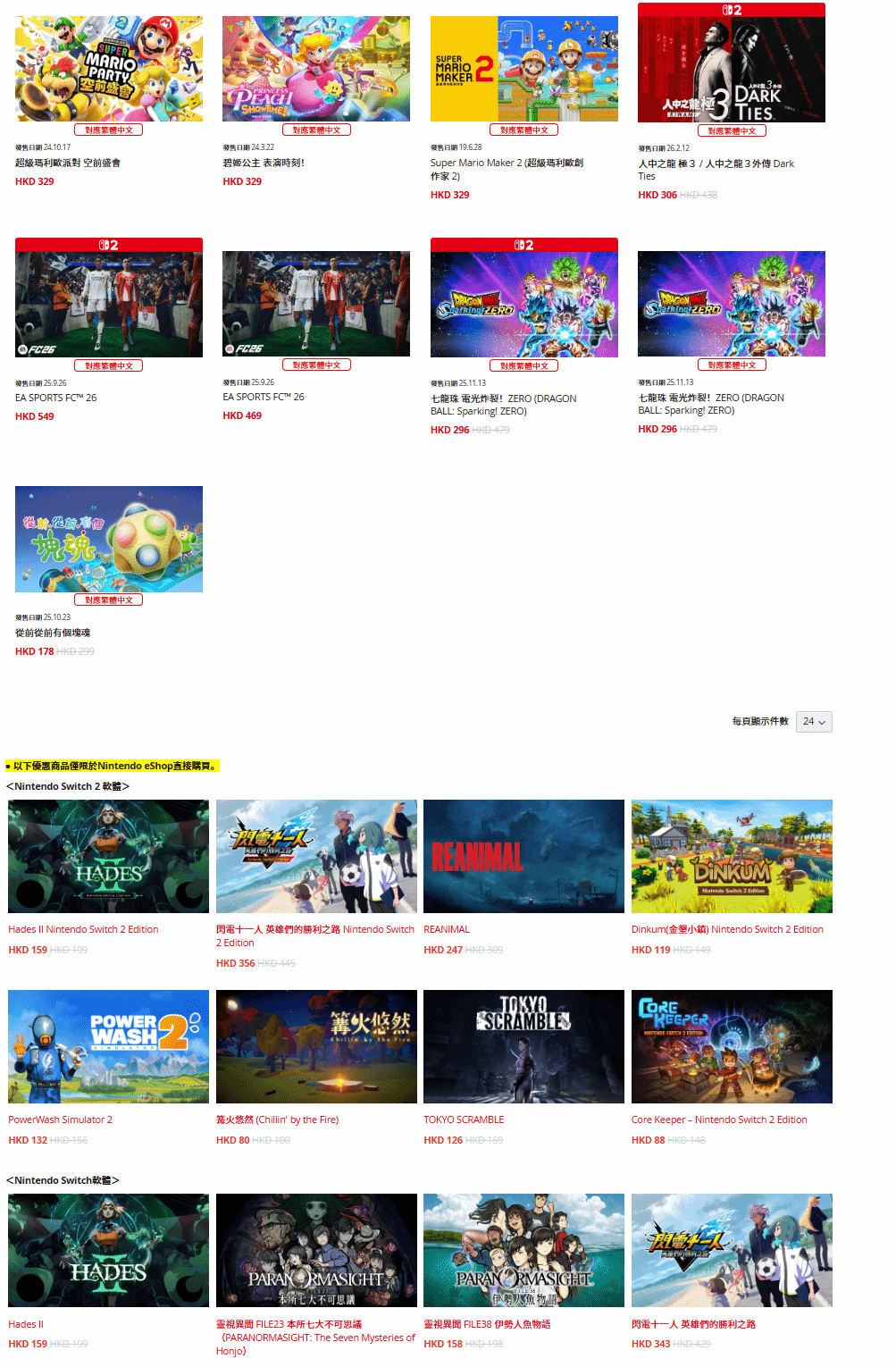 - 《超级马里奥派对:空前盛会》:原价HKD 329,折后价HKD 229,优惠幅度30%