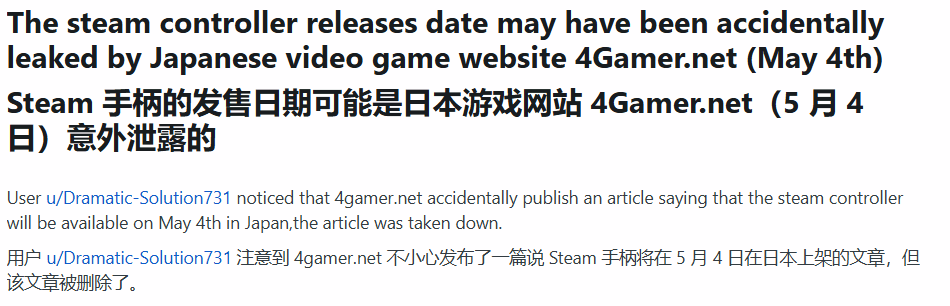 近日,Reddit论坛有用户分享消息称,日本媒体4Gamer无意间透露了新一代Steam手柄的发售时间,确定为5月4日。Valve这款备受玩家期待的全新硬件产品,很快就要正式和大家见面了。