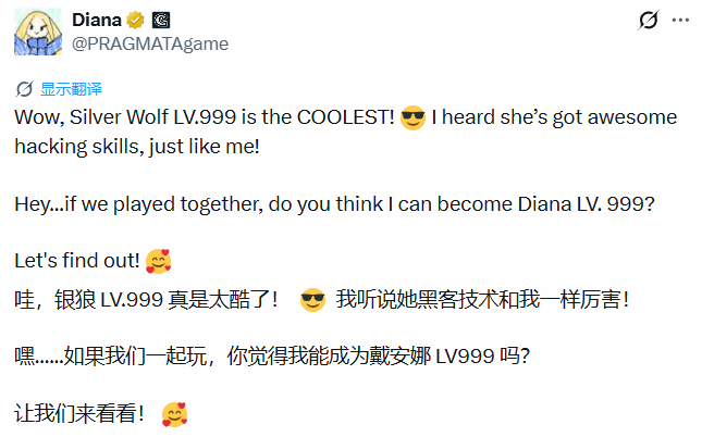 近日,米哈游旗下《崩坏:星穹铁道》的海外官方账号,与卡普空新作《识质存在》的官方账号,展开了一场十分有趣的线上互动。互动之初,《崩坏:星穹铁道》方面率先发文,为游戏内角色“银狼 LV.999”征集高难度的挑战玩法,没过多久,《识质存在》的主角戴安娜便主动作出回应,向银狼发出了联机共玩的邀请。