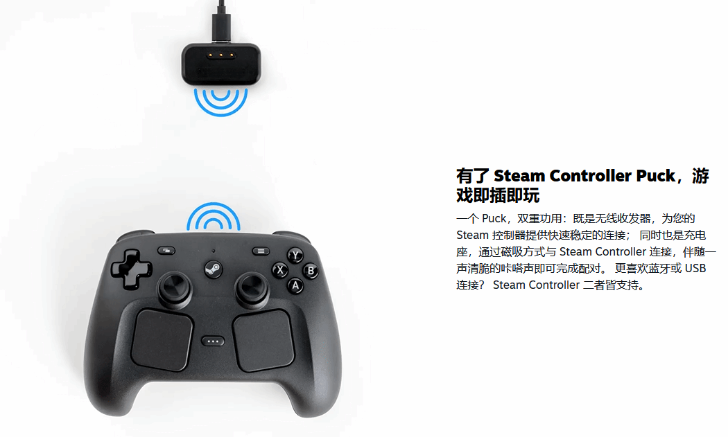 硬件规格方面,这款手柄采用了TMR磁性摇杆技术,支持高保真震动反馈及“握持感应陀螺仪”,官方宣称续航时间可达35小时以上。包装内还附赠一个“Puck”配件,它既是无线接收器,也是磁吸充电底座。当然,用户也可以通过蓝牙或USB线进行连接。