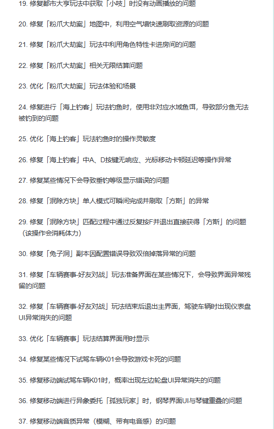 此外,车辆的物理手感和操控反馈也将在近期重点修复,1.1版本还将加入车辆智能巡航功能以降低驾驶门槛。官方还表示,将全力打磨后续角色,避免元素堆砌,加强角色辨识度,并持续优化战斗的受击反馈、动作前后摇、镜头震动与音效等。已修复问题>