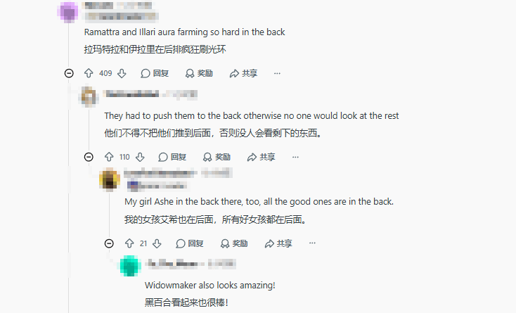随着相关企划消息在海外论坛曝光,玩家们的讨论迅速升温,大家围绕这幅集体创作的画作各抒己见,氛围十分热烈。从画面细节来看,拉玛刹与伊拉瑞两位英雄被置于后排,但独特的特效设计让他们气场拉满,有玩家观察到,制作方或许是有意降低其他角色的视觉存在感,以此让这两位英雄更受关注。而艾什、黑百合这两位高人气英雄,同样被安排在画面后方,其精致的造型设计收获了粉丝们的一致认可,不少玩家留言称赞画师的精湛技艺,对画作细节把控十分满意。