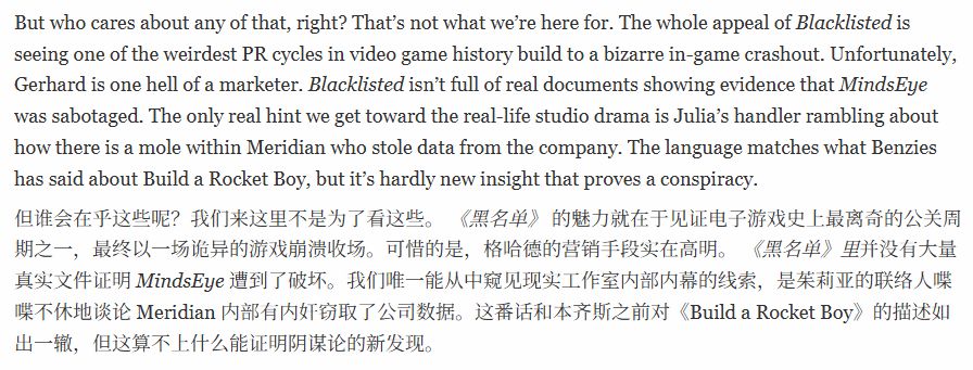 技术层面,《Blacklisted》在PS5 Pro上依然会出现掉帧和卡顿,连配音都透着一股廉价的AI味。可以说,这个DLC不仅没能成为《心之眼》的救命稻草,反而成了一场拙劣的公关闹剧。真正拖垮这家工作室的,恐怕从来都不是什么外部的“水军”,而是高层混乱的决策和离谱的管理。