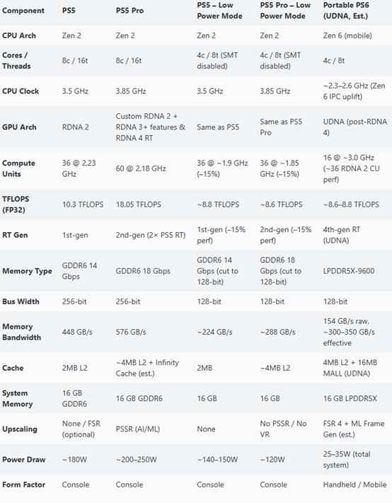 有网友结合知名爆料人 Kepler_L2 泄露的 PS6 及 PS6 掌机信息,同时参考 PS5/PS5 Pro 新低功耗模式,对 PS6 掌机规格进行估算后得出结论:在 AI 技术升级的支持下,PS6 掌机不仅可能运行部分 PS6 游戏,甚至具备兼容所有 PS5 游戏的能力。