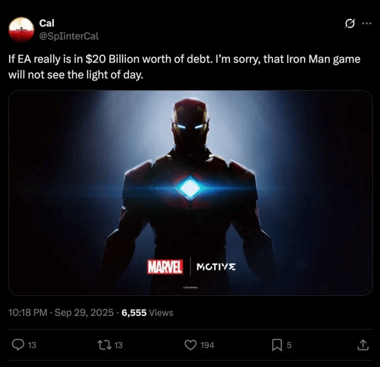 据悉,收购完成后EA将背负200亿美元债务,这意味着公司可能会推行大规模裁员、缩减开支及加速盈利化的策略。这些变动或将对公司的创意产出与内容方向产生不利影响。业内人士表示,如此大规模的结构调整,可能会使EA未来的游戏项目转向更保守、更侧重商业化的发展路径。