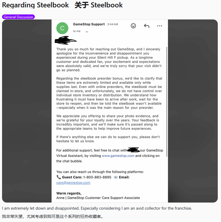 针对该情况,GameStop客服回应表示,这些铁盒属于“极度限量”物品,公司无法控制具体门店的分配数量。