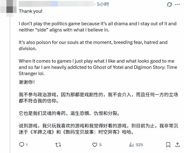 近日,海外一名游戏玩家的社交平台发言引发全球玩家群体的广泛共鸣。该玩家在动态中表态:“向所有专注游戏本身、远离社区争议漩涡的玩家致以敬意”,并特别提及《羊蹄山之魂》与《剑星》两款近期备受关注的作品。