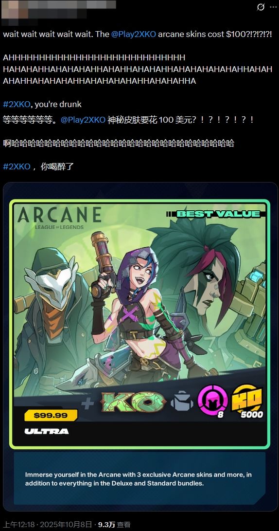 据IGN报道,Riot Games开发的《英雄联盟》世界观衍生格斗游戏《2XKO》已于近日开启抢先体验,同步推出的《双城之战》主题皮肤捆绑包却引发争议——其100美元(折合人民币约712.7元)的定价让大量玩家感到震惊,甚至引发不满情绪。
