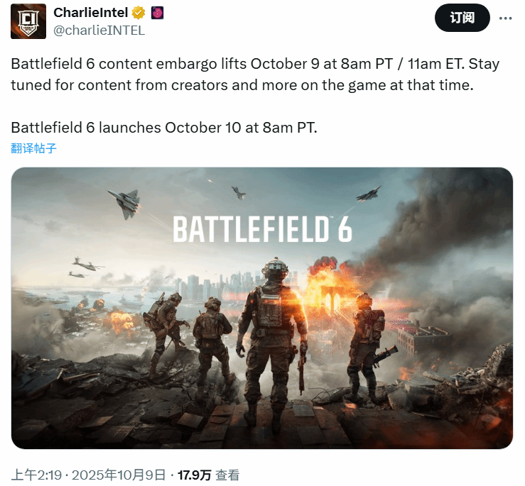 据行业爆料账号charlieINTEL消息,《战地6》媒体评测将于北京时间10月9日23:00准时解禁。作为系列时隔多年的正统续作,本作的多人模式创新与单人战役表现将成为评测关注焦点,而DLSS 4技术对游戏帧率的提升效果也备受硬件玩家期待。