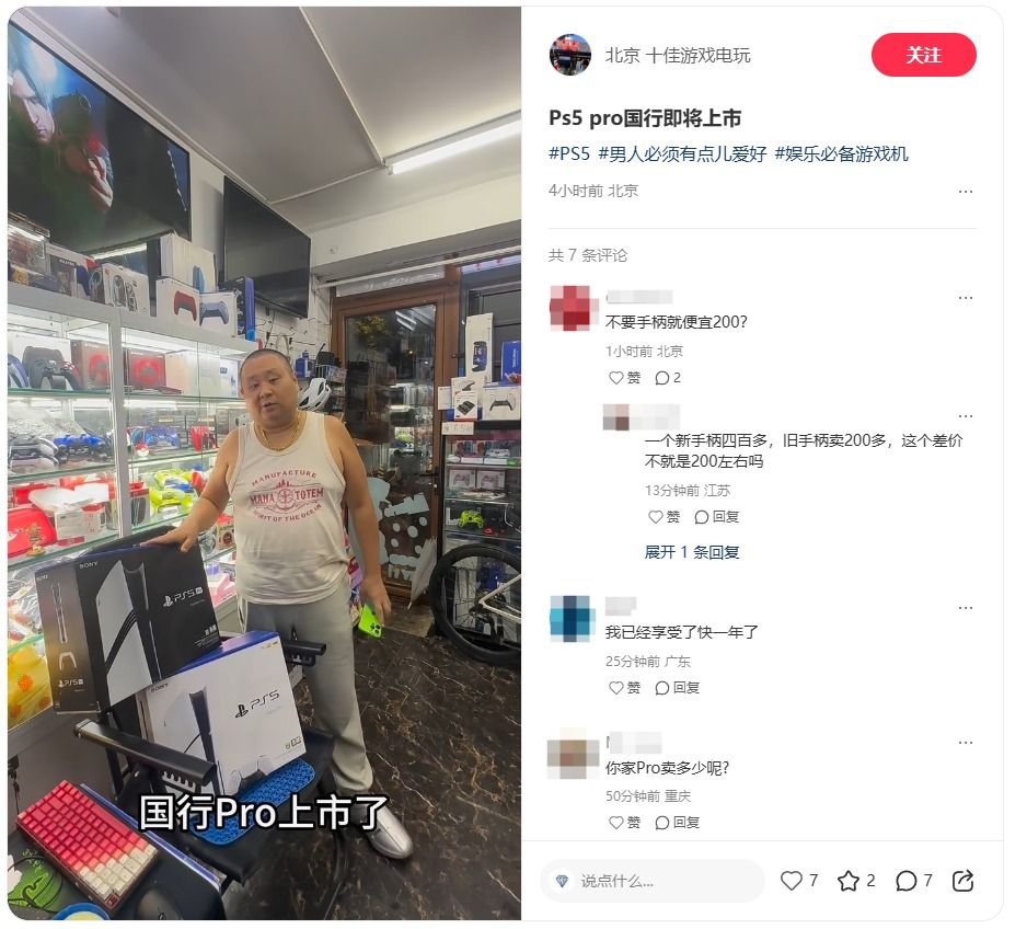 北京十佳游戏电玩通过小红书发布视频爆料,建议玩家近期暂时不要购买日版和港版PS5 Pro。据该店老板透露,国行PS5 Pro预计将于10月中旬正式上市,且售价会比海外版优惠约800元。