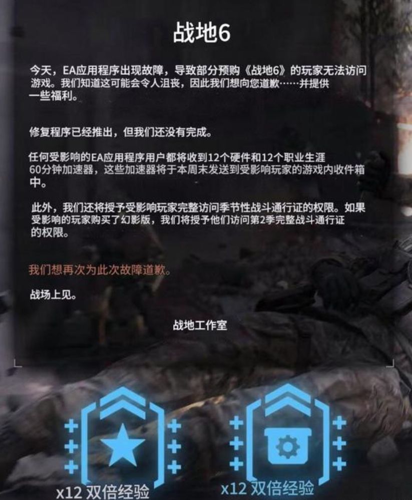 针对该问题,开发团队DICE迅速作出回应,发布道歉声明及补偿方案。公告中提及,游戏修复程序已紧急推出,但尚未完全解决问题。为弥补玩家损失,受影响用户将获得12个硬件、12个职业生涯60分钟加速器,以及季节性战斗通行证的完整访问权限。
